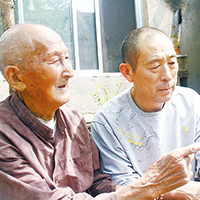 在山东省蒙阴县孟良崮脚下的古泉村,已90岁高龄的老革命邵泽信正在侍弄着花草。