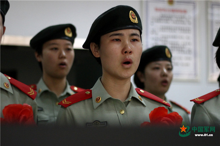当再次唱起那首《通信兵之歌》,女兵眼里饱含泪水。(袁浩翔摄)