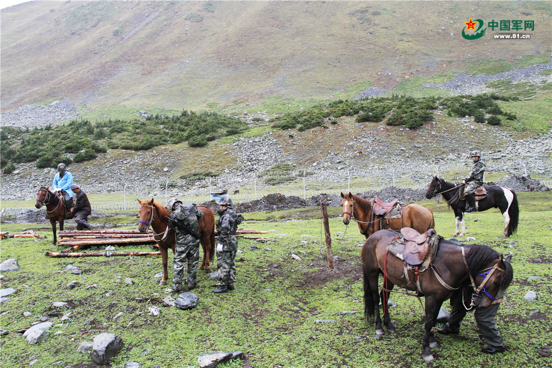 绵绵细雨中,官兵乘车从连队出发,2小时后便来到达热拉换乘军马。冯团长说,以往道路不通,官兵巡逻都是从连队或几十公里外的执勤点骑马出发,到达宿营点达热拉需要一天时间,如今乘车只需2小时。