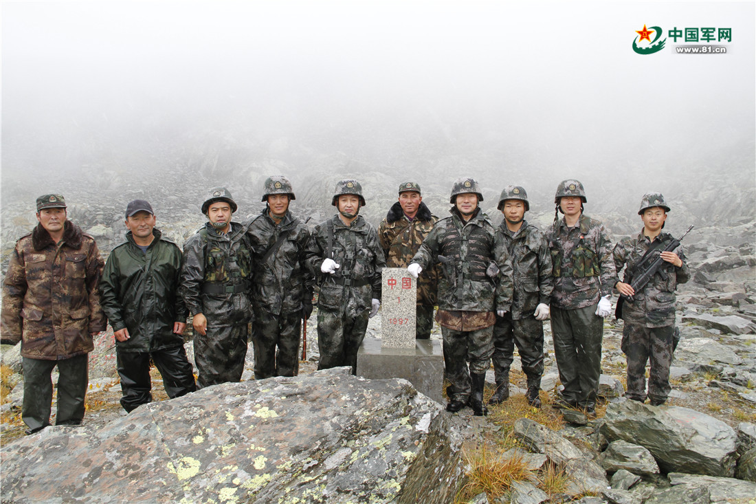 到达界碑并合影。