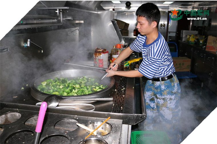 “远海航行,战友们体力消耗很大,后期菜品又有限,这时我们就要精心选择食材,合理搭配,才能保持营养均衡。”就像刘伯楠所说,炊事班的官兵们,有时配一些甜点,有时做一碗布丁,每逢周末还会加餐,想方设法满足官兵日常所需。当我们晕船难受时,他们要坚守岗位,在一晃三摇中炒好每一锅菜;当我们受失眠困扰时,他们要早早起来准备各种食材,保障好每一顿伙食。