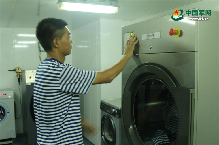 每周闷热的洗衣房内,雷达兵杨霁晓都会将要洗的衣物有序放置,待机洗后再烘干、晾衣、熨烫,“一条龙”服务后还要在每件衣物上贴上姓名标签,方便战友寻找。