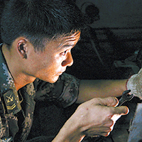 战士的字典里,没有“服输”二字。大拇指不灵了,罗义勤就用无名指按发火开关;右手仅剩的两根完好手指难以握稳射击握把,他便用三角巾固定手掌。久而久之,他创造出用顶代替按、用拨代替摇、三指定标尺的“专属绝活”。