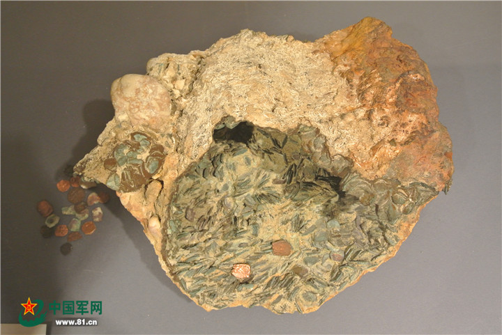 以色列博物馆中珍藏的从海底打捞上来的古犹太钱币。中国军网记者 李景璇摄