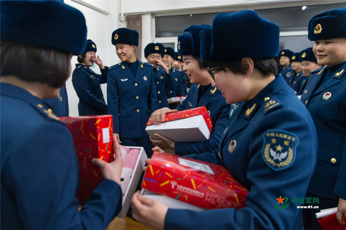 连里为带兵班长准备了小礼物,由新兵递给她们,班长们特别开心。