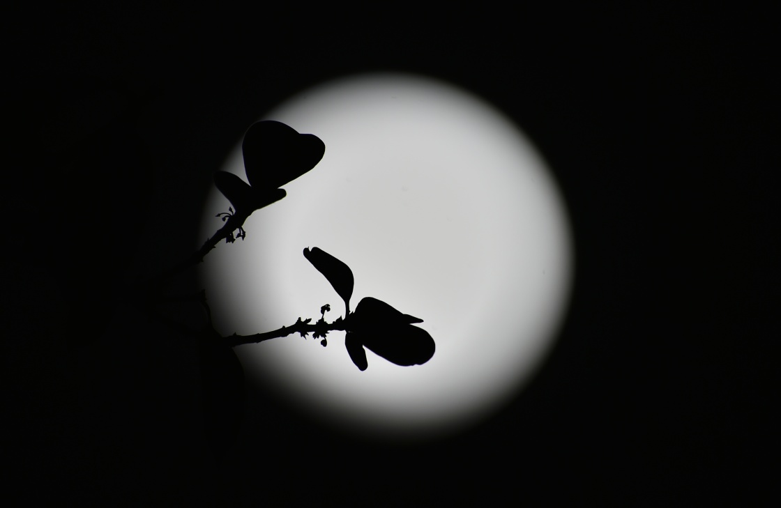 这是1月31日在河南省漯河市许慎文化园中拍摄的月亮。新华社发(李嘉南摄)