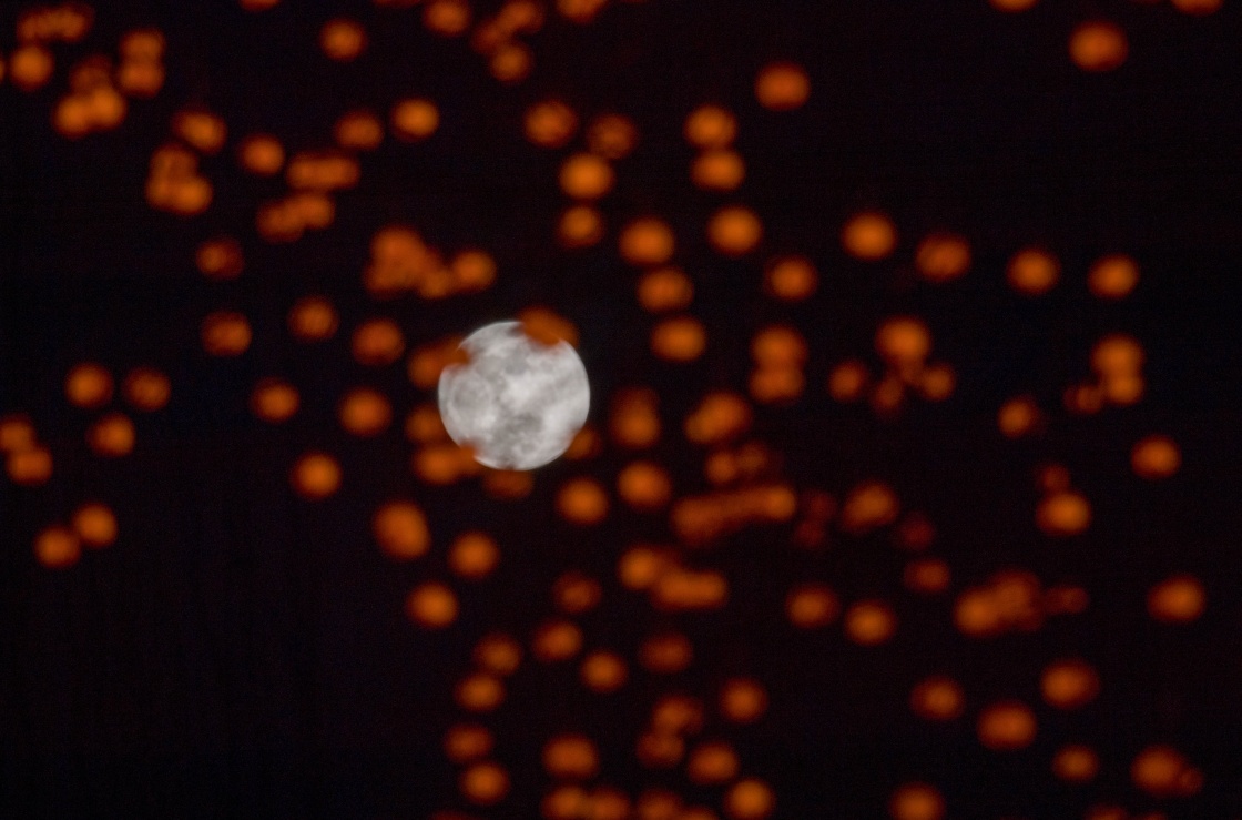 这是1月31日在内蒙古呼和浩特市拍摄的月亮。新华社记者 连振 摄