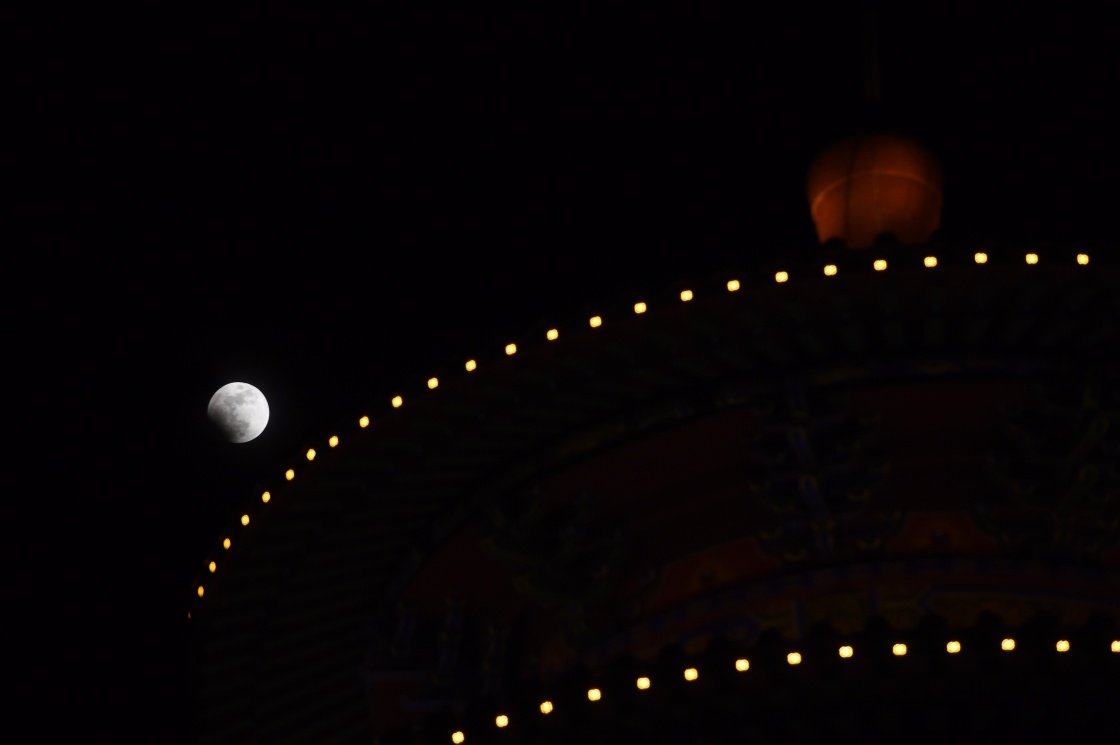 图为在吉林长春拍摄的月全食初亏(1月31日摄)。新华社记者张楠摄
