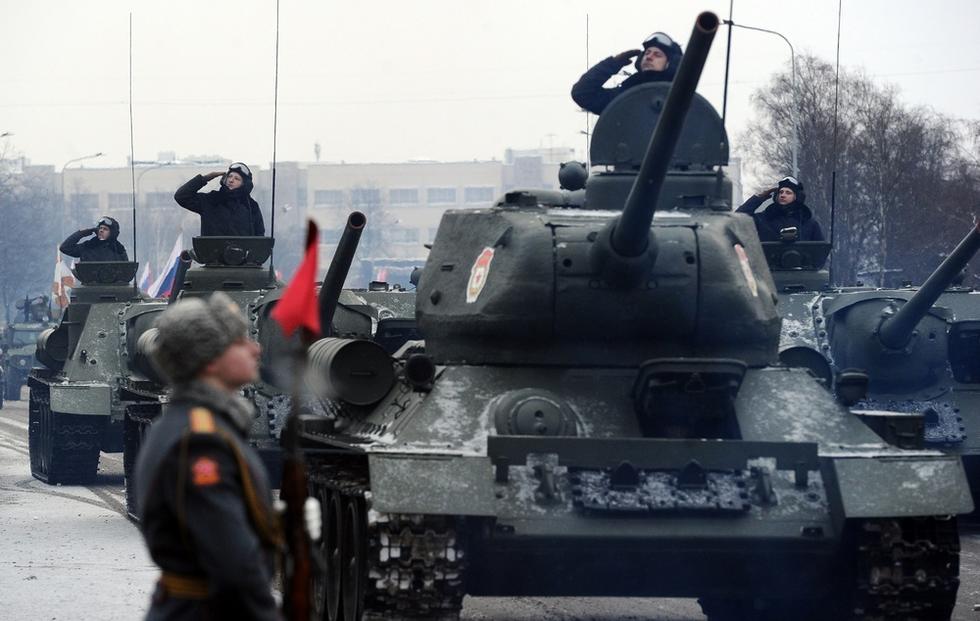 俄军不仅展示了卫国战争使用过的T-34坦克、苏-100自行火炮,还展示了虎式装甲车、铠甲防空系统和伊斯坎德尔导弹等新型武器装备。