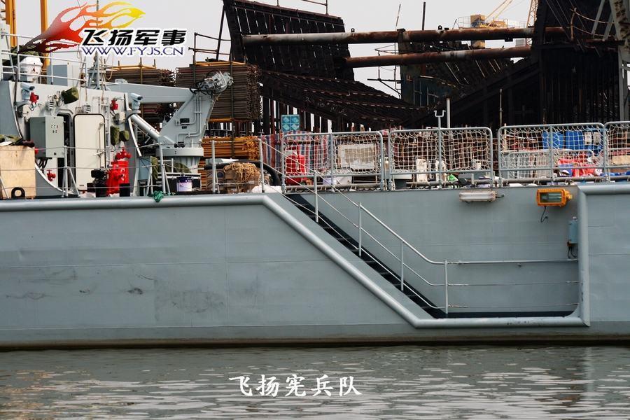 网友拍摄到的第2艘国产三体舰细节(飞扬军事 飞扬宪兵队 供图)