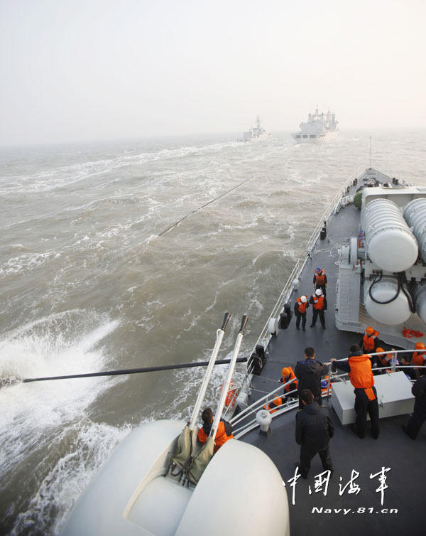 海军053护卫舰海上补给