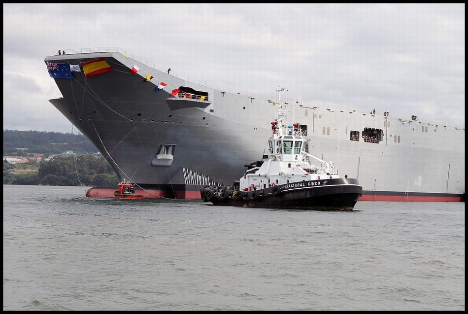 堪培拉级两栖攻击舰2号舰阿德莱德号下水后不久的画面