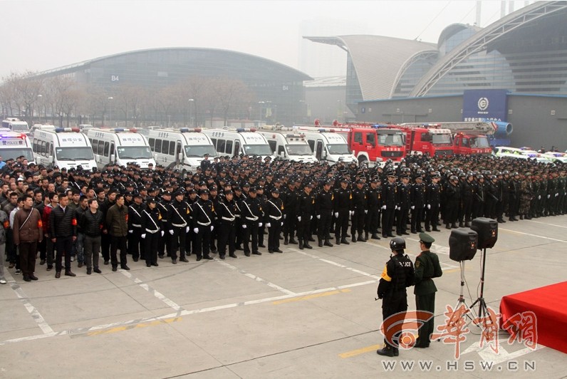 3月3日上午,西安市雁塔区举行全国“两会”安保暨反暴恐警民联手群防群治启动仪式。图片来源:华商网