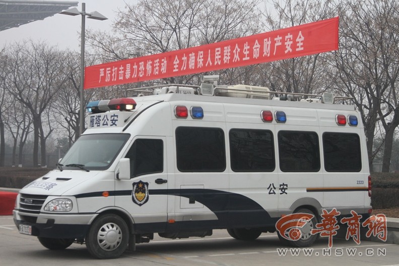 2014年3月3日,西安市雁塔区委、区政府、公安雁塔分局联合开展全国“两会”安保暨“反暴恐”警民联手群防群治行动启动仪式。公安雁塔分局全警动员,集结上千民警、两千名治安联防队员和上万名群防力量走上街头进行全天候治安防范、巡逻防控,全力开展全国“两会”安保暨反暴恐工作。全国“两会”期间,公安雁塔分局已经提前制定了对于辖区重点区域、大专院校和科研单位、人口密集区等要害区域的安保方案和突发事件工作预案。同时在全区设置68个治安执勤点,组织民警、武警、反恐等上千人的安保力量开展24小时全天候网格化巡逻。此外,西安市公安局雁塔分局还在大雁塔广场、大唐不夜城、小寨、曲江国际会展中心、西部电子广场等人流密集地带设立了流动警务车,现场开展治安秩序维护和安全督导工作,防止各类不安全事故发生。图为分局民警在绕城高速长安路入口进行盘查,并设置了阻车器,防止暴恐分子进入西安。文字来源:人民网 图片来源:CFP视觉中国