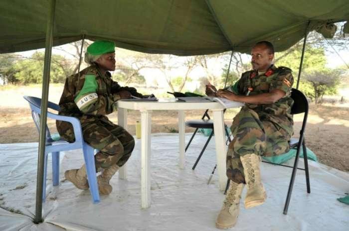 乌干达女坦克兵与指挥官交流