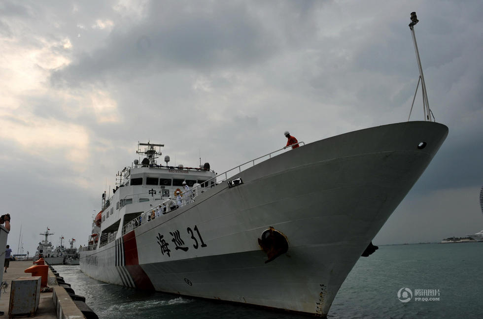 3月9日,“海巡31”离开南海救助局三亚基地码头。当日16时30分许,南海最大海巡船“海巡31”离开南海救助局三亚基地码头,前往马航失联航班疑似坠落海域展开搜救。“海巡31”于3月8日21时从广东茂名港出发,经过10多个小时的航行于3月9日13时许抵达海南三亚,随后进行出发前准备工作。据了解,“海巡31”船搭载了扫测救援设备、救援专家以及补给物资和海事直升机,预计将于两天两夜后到达事发海域展开搜救。新华社记者 张永峰 摄