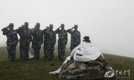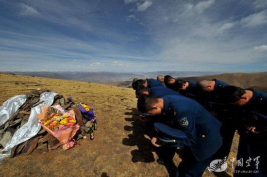 甘巴拉雷达站的官兵祭奠老兵张在安。(郭超英摄)