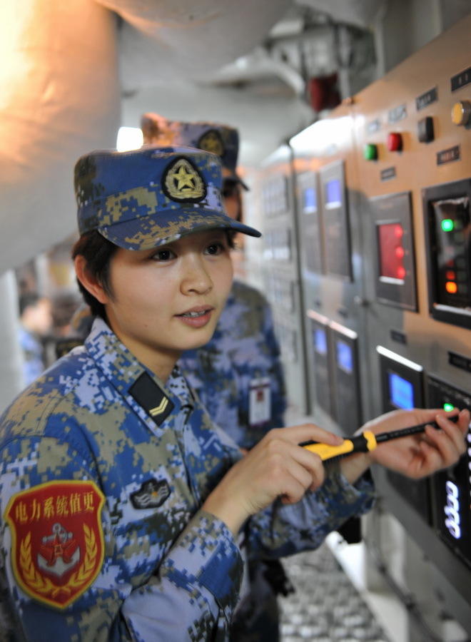 辽宁舰女兵遍布全舰 女甲板兵首次曝光