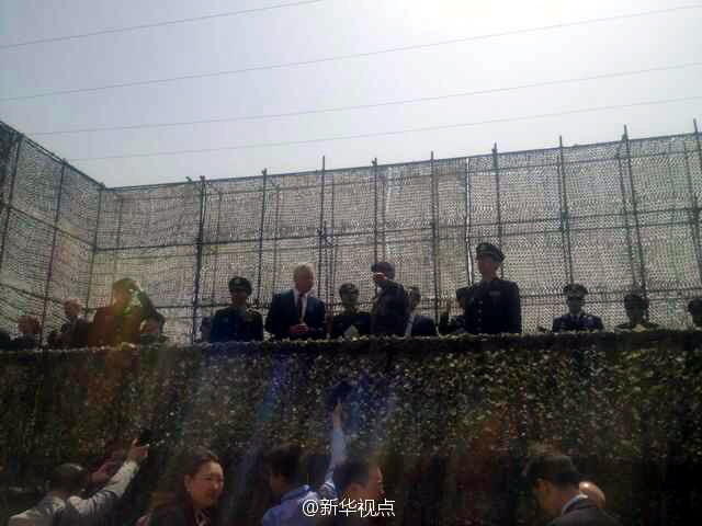4月9日,北京昌平,美国国防部长哈格尔9日上午参观总装备部装备学院昌平士官学校,观看学员展示后勤装备使用演示