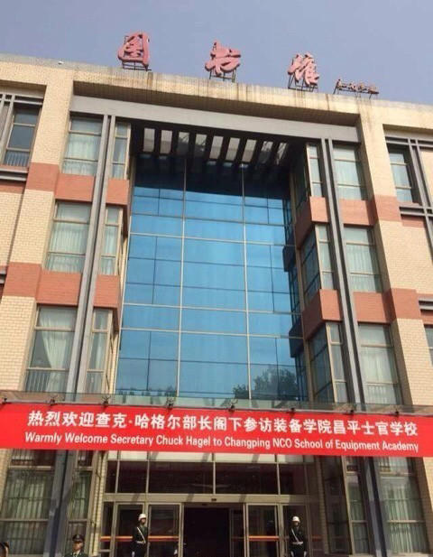 4月9日,北京昌平,美国国防部长哈格尔9日上午参观总装备部装备学院昌平士官学校