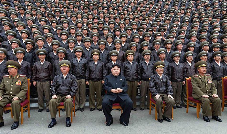 朝鲜领导人金正恩(Kim Jong-un)日前视察朝鲜人民军空军部队,与大批军人合影
