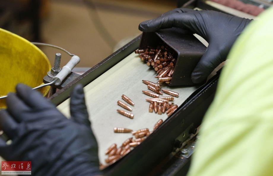 4月21日,美国犹他州Barnes公司,在包装子弹前,一名工人检测子弹。