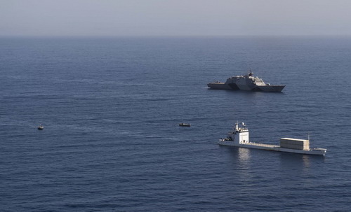 5月12日,美国海军自由号濒海战斗舰(LCS-1)在太平洋海域进行了首次舰载无人直升机、直升机与小艇的联合作战试验。
