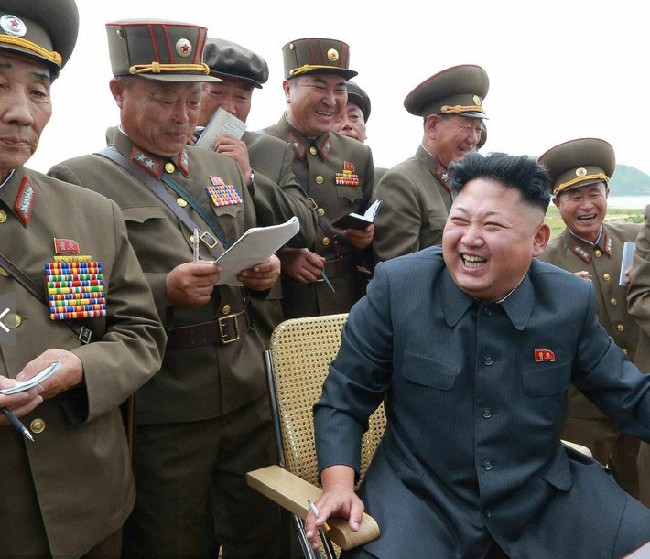 当地时间2014年8月15日,据朝中社报道,朝鲜最高领导人金正恩日前指导朝鲜人民军发射战术火箭。图片来源:东方IC