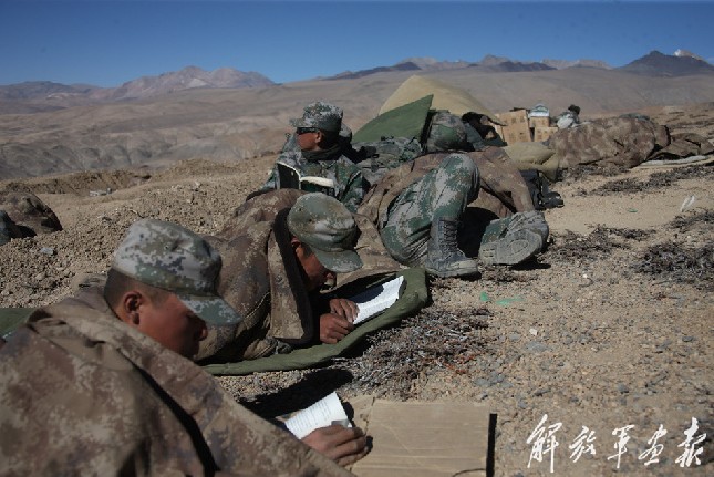 官兵在山顶看书,他们从心底觉得这是一件快乐的事。罗乐摄