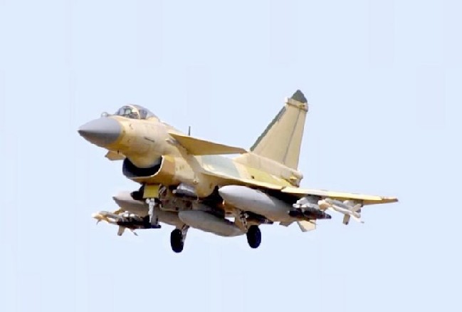 从照片中可以看到,这架歼-10B战斗机在试飞过程中挂载了3个副油箱、8枚炸弹以及2枚空空格斗导弹,并且使用了符合挂架,展现出了惊人的战斗能力。