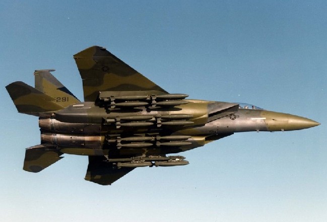 F-15战斗机挂满炸弹。