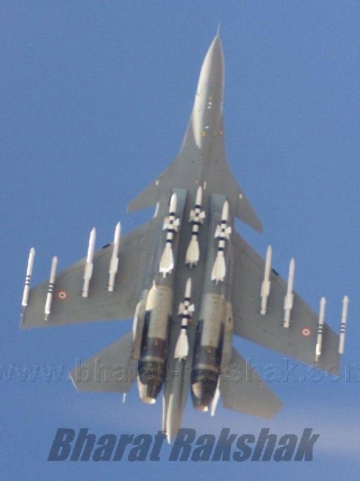 印军展示几张本国空军苏30MKI满弹飞行的照片,苏30携带了12枚空空导弹,数量相当可观。