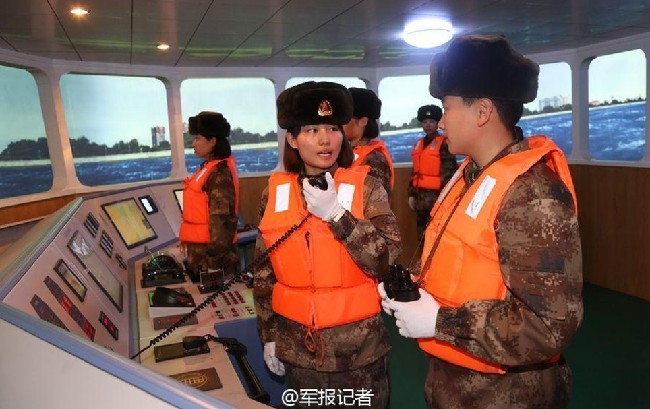 11月1日,黑龙江省军区某边防巡逻艇大队女兵排组织船艇模拟操作训练。今年9月,该大队新增编一个女兵排。由于驻地黑龙江界江即将进入封冻期,女兵们便借助水兵模拟训练中心练习业务。据悉,这批女兵将成为我国北疆界江上首批船艇女兵。