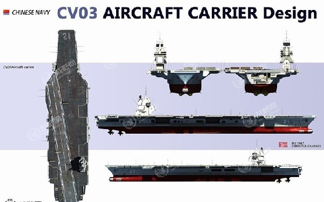 基本参数:甲板长342米,宽78米,水线宽42米,吃水13米,标准10万吨,满载11.5万吨;船舰组员1020人,飞行大队500人,其中100人为无人机操纵员。
