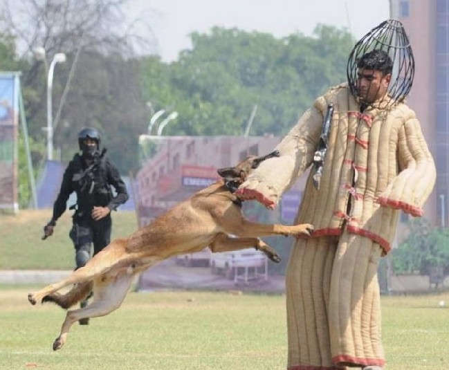 印度媒体发布一组印度“黑猫”突击队在MANESAR训练基地表演特技。胸口碎大石,驯服猛犬,展示突击队员过硬素质。
