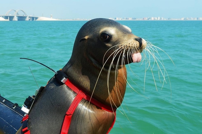 近日,有国外媒体曝光了数张去年底美军动用“海豚特种部队”的海狮参加中东imcmex-14演习的照片。美军“海豚特种部队”的成员有海豚和海狮等拥有声纳系统的海洋哺乳动物。