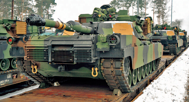 M1A2坦克和战车运输至德国格拉芬沃尔基地作为欧洲轮训部队装备。