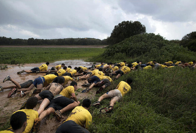 近日,美联社摄影记者Oded Balilty跟着一群十多岁准备参军的以色列男孩,体验他们的准军事培训。以色列一直以全民皆兵而闻名,高中生在毕业后都要接受体检,然后参加三年的强制兵役。而这群孩子参加的是私人培训机构的训练,加紧进行军事方面训练,以增加进入精锐的特种部队的机会。以色列女性也要承担义务兵役,尽管女兵只占这个国家作战部队的3%。青少年将在这里接受严格的体能训练,城市作战的培训,熟悉突击步枪的使用,做好进入军队服役前的准备。(鸣谢:空军网)