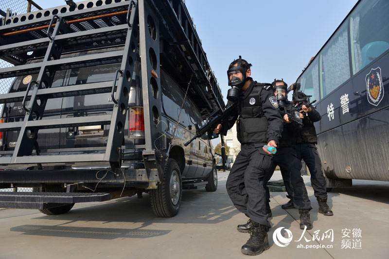 人民网合肥5月14日电(记者常国水 通讯员洪伟 吴杰)5月13日,安徽铜陵市公安局特警队员进行反恐练兵。这其中包括29岁的美女特警罗敏。