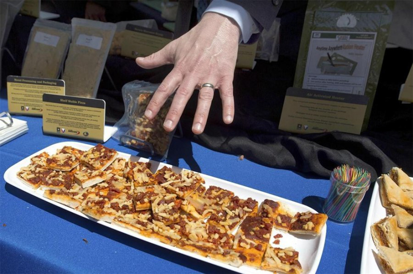 五角大楼近日举办“实验室日”,对公众开放新型装备,大部分是正在研发中的产品。其中传说已久的军用披萨亮相。披萨是美国大兵们非常钟爱的军队食品,但由于番茄酱和芝士容易变质,士兵们将披萨引入战地成为口粮的愿望从未实现过。美国科学家经过创新能将一块比萨不用冰箱保存3年,并且非常可口,未来美军有望在战场上吃到比萨饼。