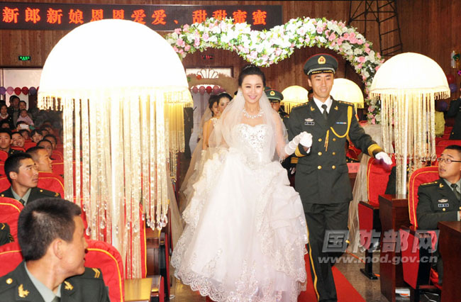 新郎孟令伯、新娘郄贝贝:异地相恋7年只见过5次,新郎孟令伯今年28岁,河北人,现任该部排长,是一个已经入伍9年的老兵。新娘郄贝贝29岁,也是一个河北女孩。