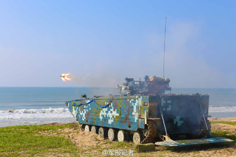海军陆战队某旅实弹射击 两栖战车怒吼海天