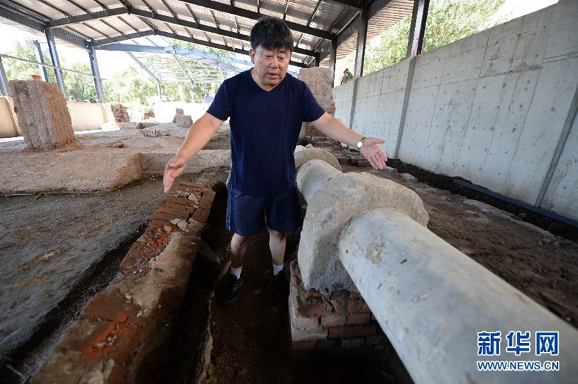 黑龙江省文物考古研究所“七三一”考古队负责人李陈奇在“七三一”部队遗址细菌实验室及特设监狱处介绍文物的发掘情况(7月28日摄)。新华社记者王凯摄