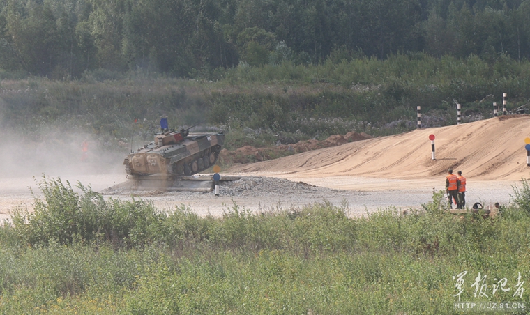 我步战车正在翻越近一米高的崖壁。秦超 摄