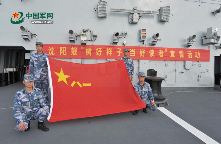 沈阳舰按照计划向俄罗斯符拉迪沃斯托克航渡。下午16时许,沈阳舰隆重举行“树好样子•当好使者”宣誓活动。