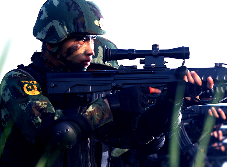 9月21日,武警狙击手李建成(左)和战友们进行长时间瞄准练习。