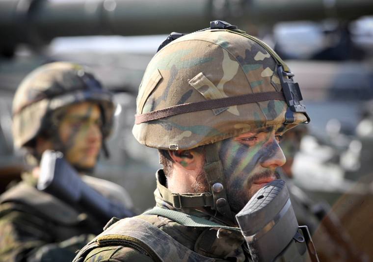 11月4日,演习部队成员参加在西班牙萨拉戈萨举行的陆空联合作战演习。新华社记者 谢海宁 摄