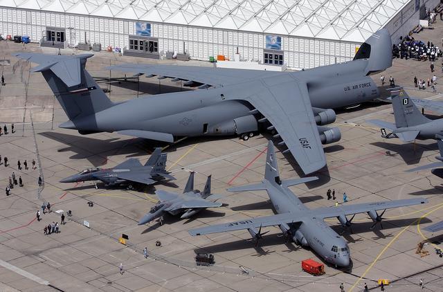 C-5运输机是美国空军最大的现役运输机,长度和足球场相当,也是世界上最大的运输机之一。图中,大家可以对比下C-5运输机和C-130运输机的尺寸。