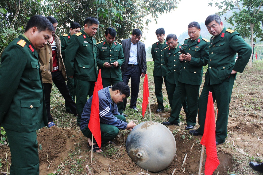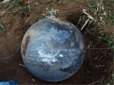 1月2日,在越南宣光省,越南军官查看一枚金属球。一名越南高级军官1月8日称,上周有3枚金属球从天而降,落在越南北部偏远地区。这几枚金属球据判断应为太空垃圾。 新华社/法新