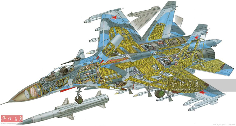俄军苏-33舰载战斗机剖面图。